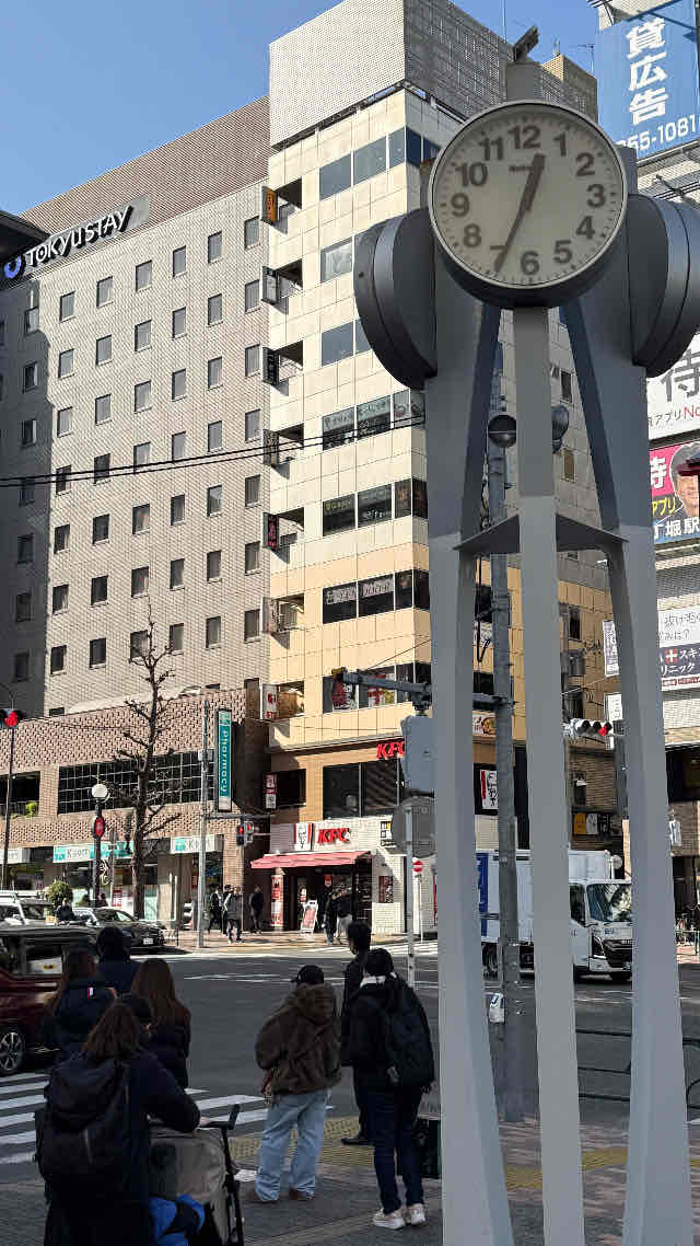 この時計を右手に見ながら交差点を渡る